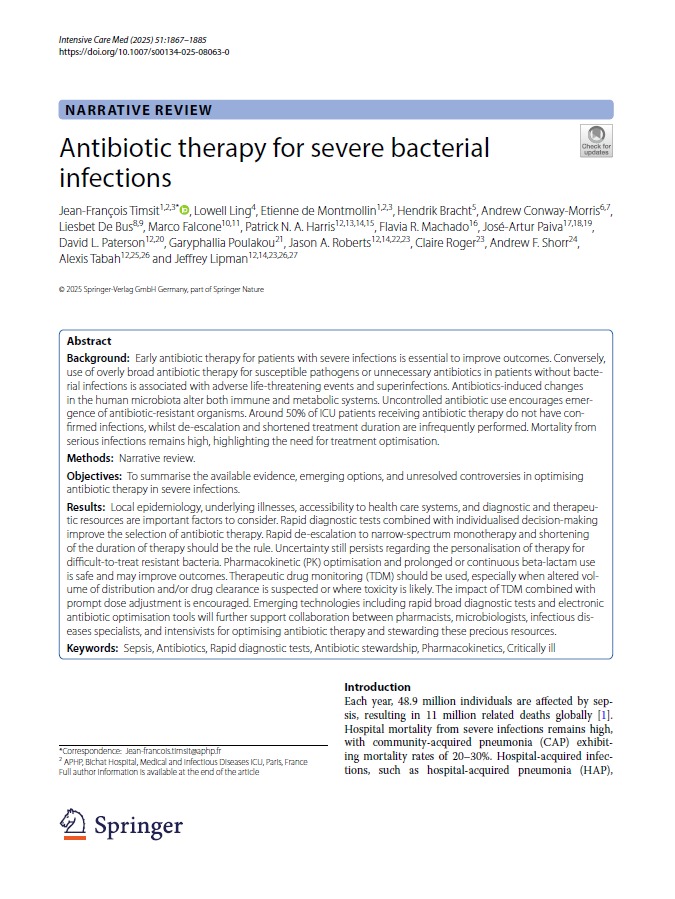 Antibiotic therapy for severe bacterial infections Intensive Care Med 2025