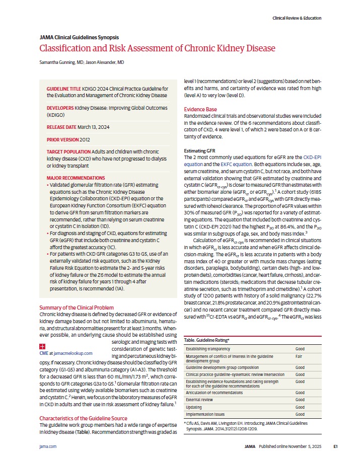Classification and Risk Assessment of Chronic Kidney Disease JAMA 2025