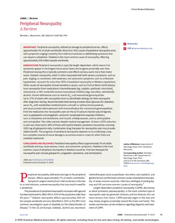 Peripheral Neuropathy A Review JAMA 2025
