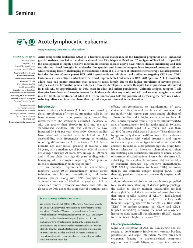 Acute lymphocytic leukaemia The lancet 2025