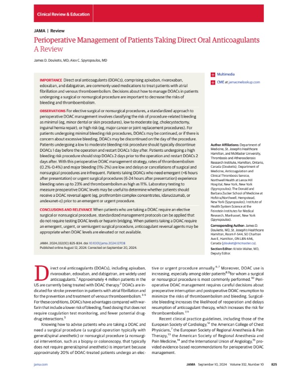 Perioperative Management of Patients Taking Direct Oral Anticoagulants JAMA 2025