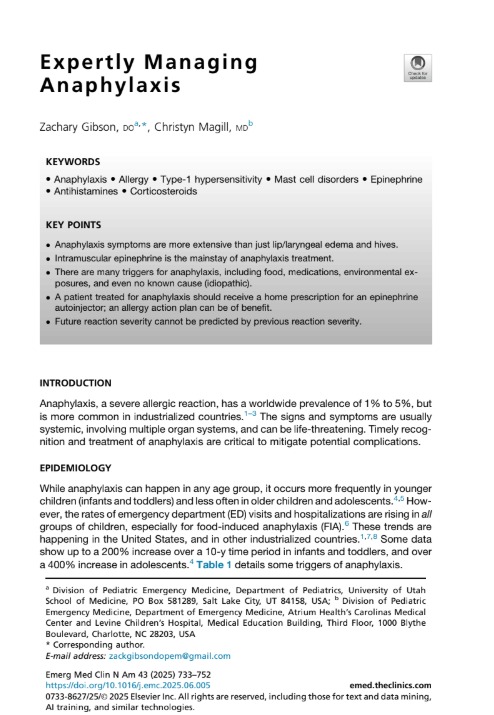 Expertly Managing Anaphylaxis Emerg Med Clin 2025