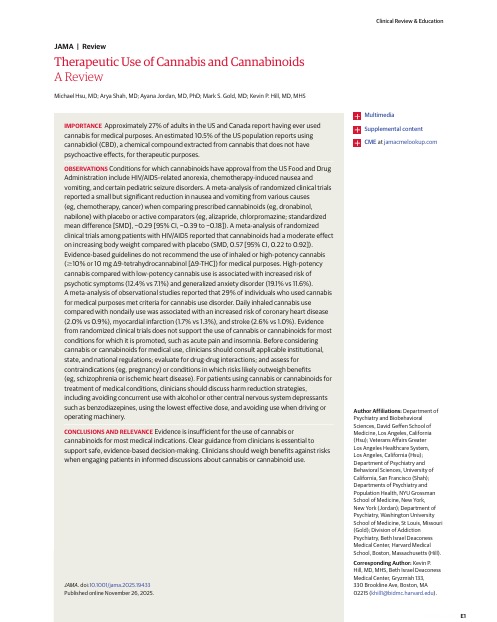 Therapeutic Use of Cannabis and Cannabinoids JAMA 2025