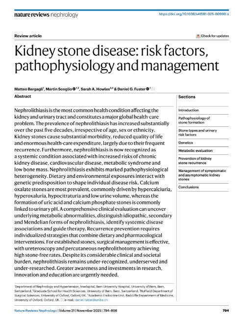 Kidney stone disease: risk factors, pathophysiology and management NATURE 2025