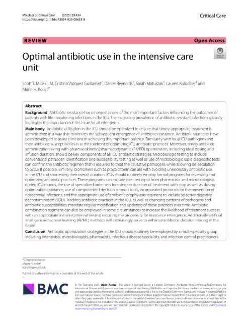 Optimal antibiotic use in the intensive care Critical Care 2025