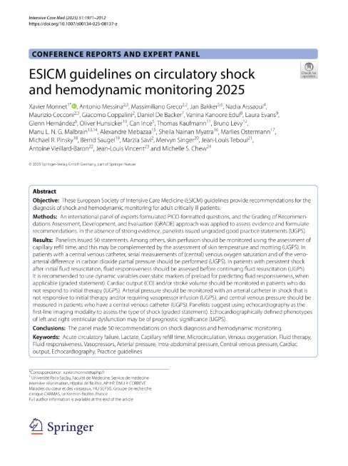 ESICM guidelines on circulatory shock and hemodynamic monitoring 2025
