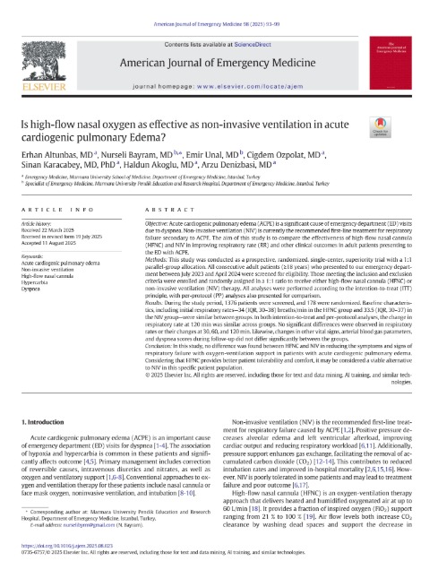 Is high-flow nasal oxygen as effective as non-invasive ventilation in acute cardiogenic pulmonary Edema? AJEM 2025