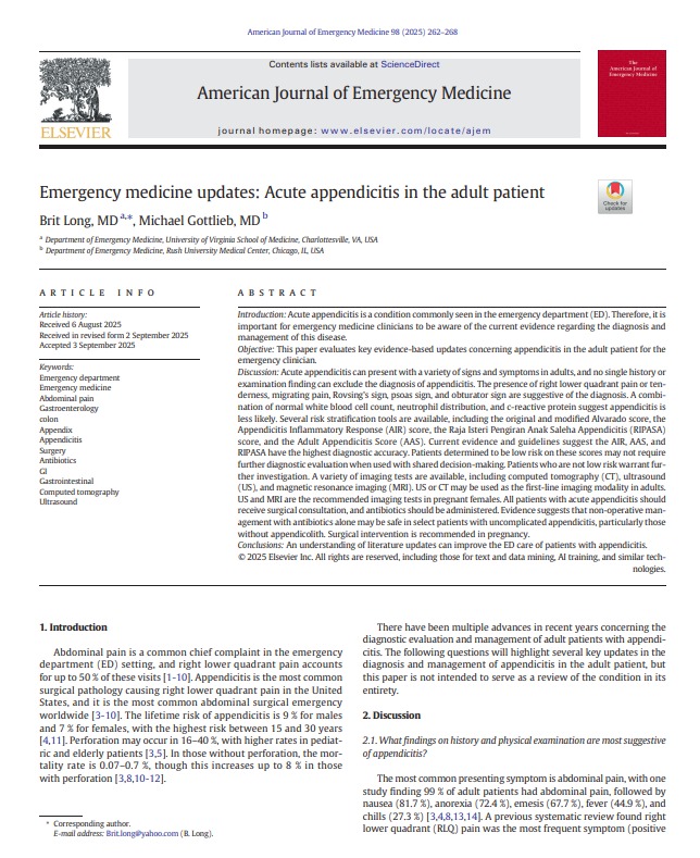 Emergency medicine updates Acute appendicitis in the adult patient AJEM 2025