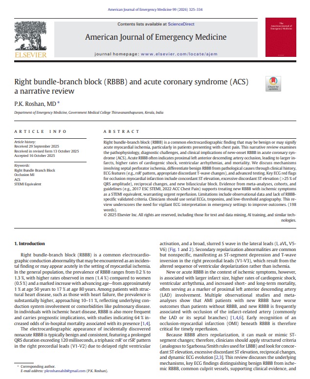 Right bundle-branch block (RBBB) and acute coronary syndrome (ACS) AJEM 2025