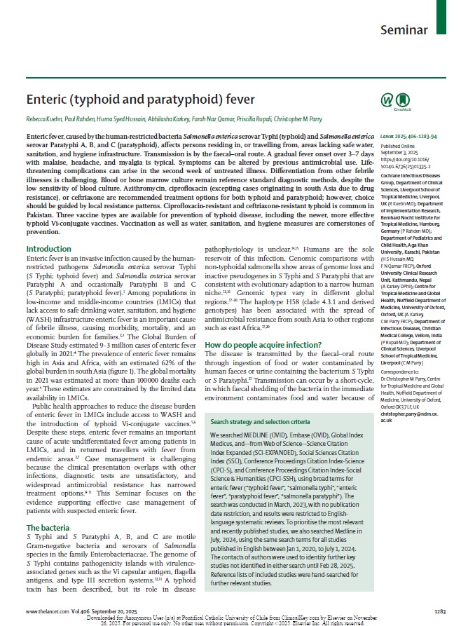Enteric (typhoid and paratyphoid) fever LANCET 2025