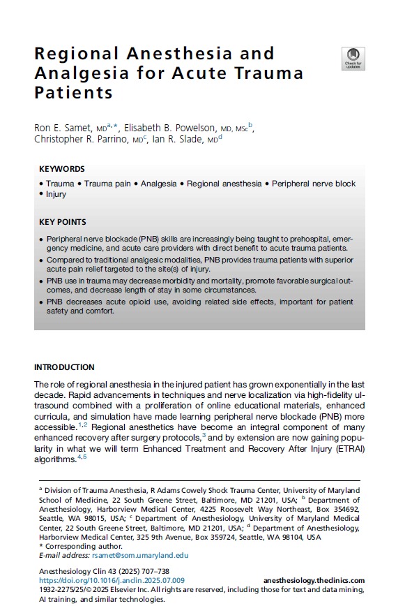 Regional Anesthesia and Analgesia for Acute Trauma Patients Anesthesiology Clin 2025