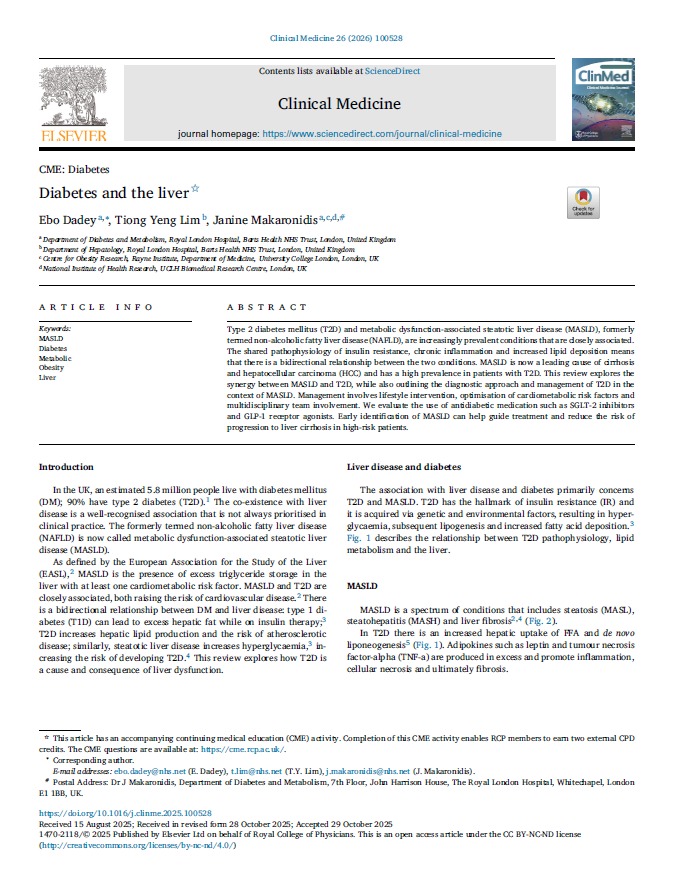 Diabetes and the liver Clinical Medicine 2026