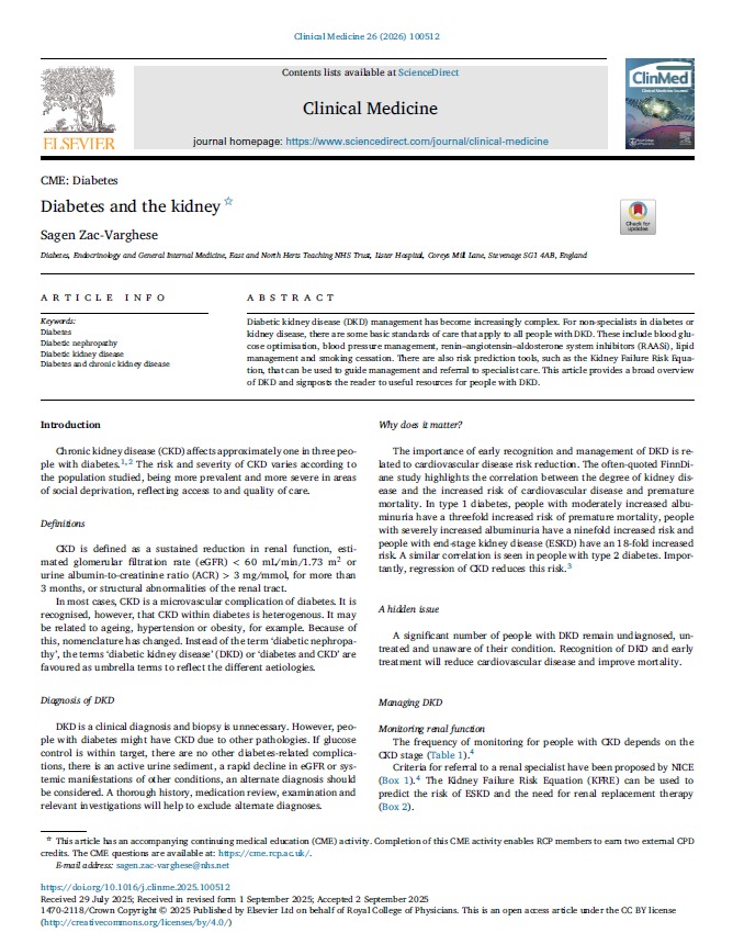 Diabetes and the kidney Clinical Medicine 2026