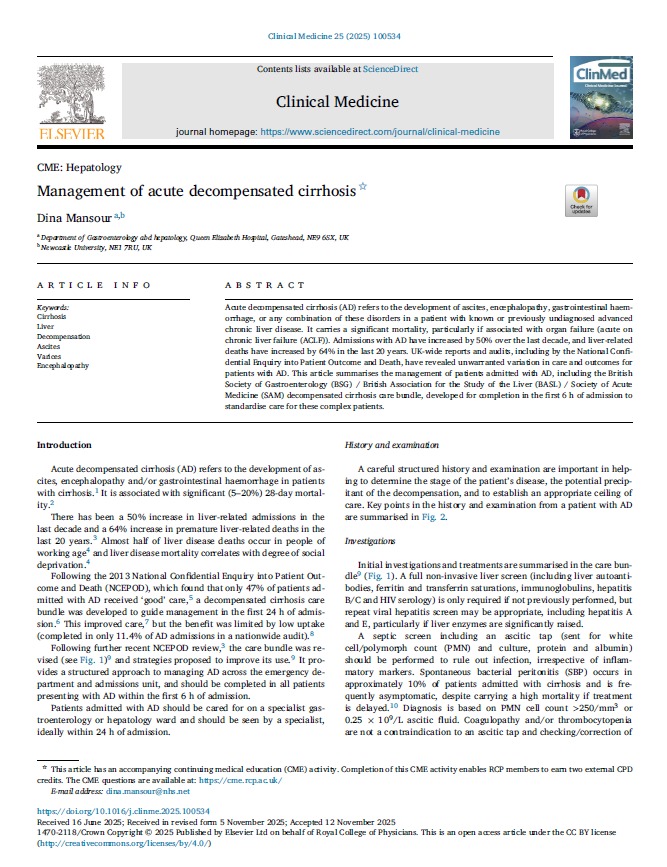 Management of acute decompensated cirrhosis Clinical Medicine 2025