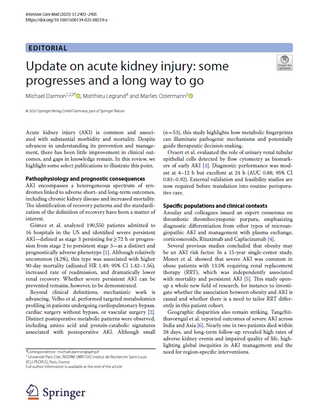 Update on acute kidney injury some progresses and a long way to go Intensive Care Med 2025