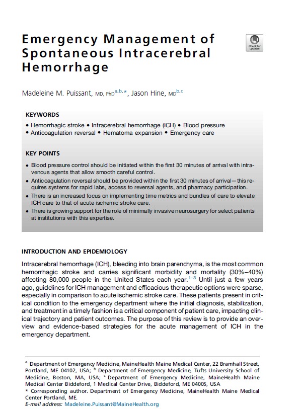 Emergency Management of Spontaneous Intracerebral Hemorrhage Emerg Med Clin N Am 2026