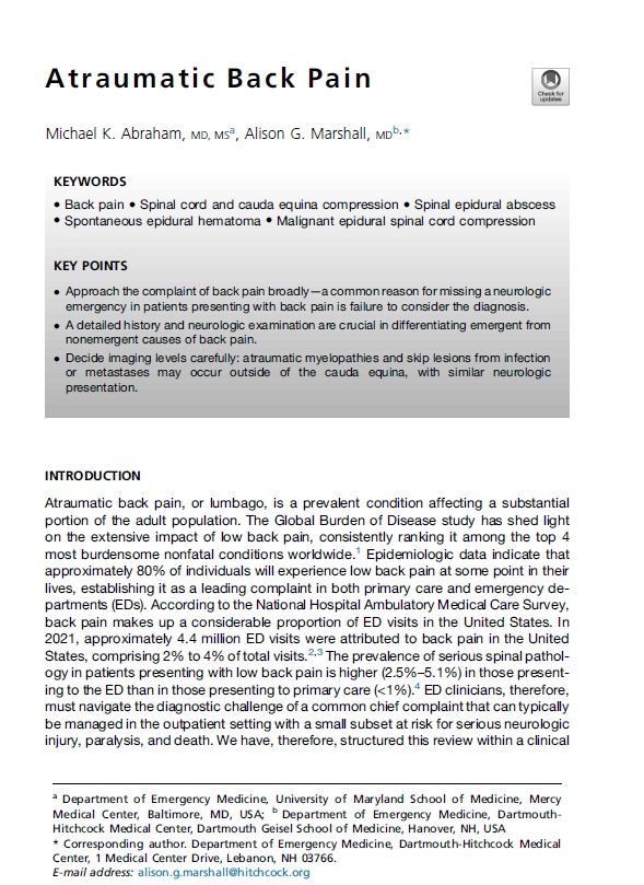 Atraumatic Back Pain Emerg Med Clin N Am 2026