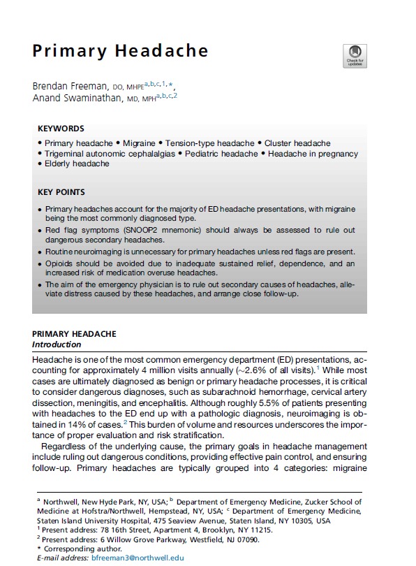 Primary Headache Emerg Med Clin N Am 2026