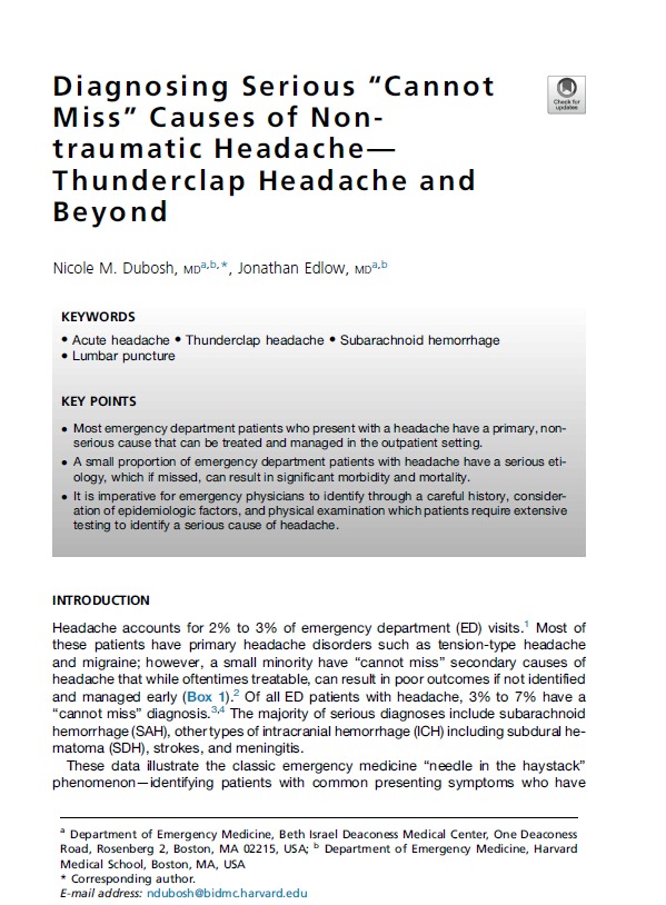 Diagnosing Serious “Cannot Miss” Causes of Nontraumatic Headache— Thunderclap Headache and Beyond Emerg Med Clin N Am 2026