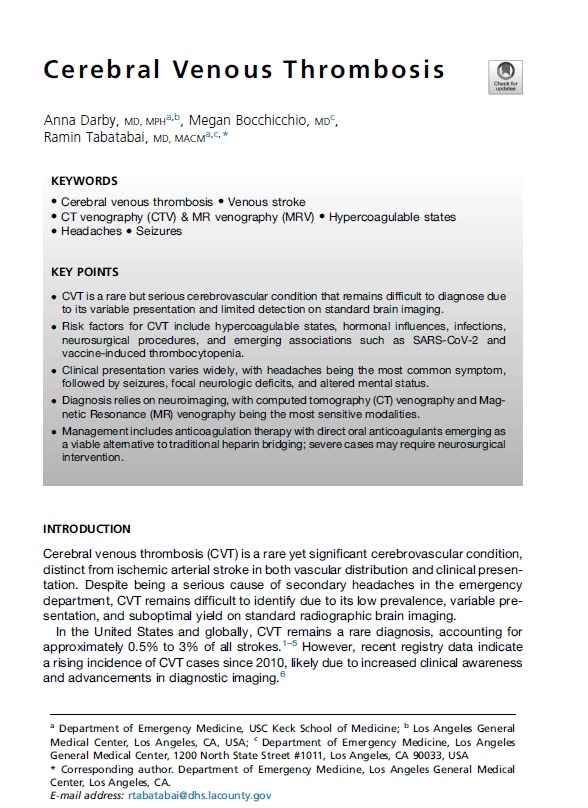 Cerebral Venous Thrombosis Emerg Med Clin N Am 2026