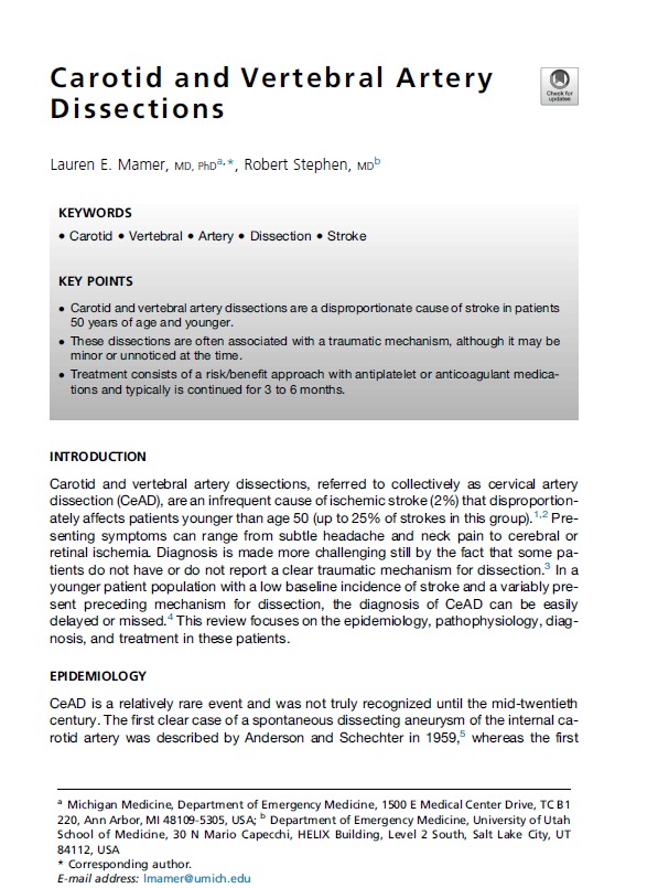 Carotid and Vertebral Artery Dissections Emerg Med Clin N Am 2026