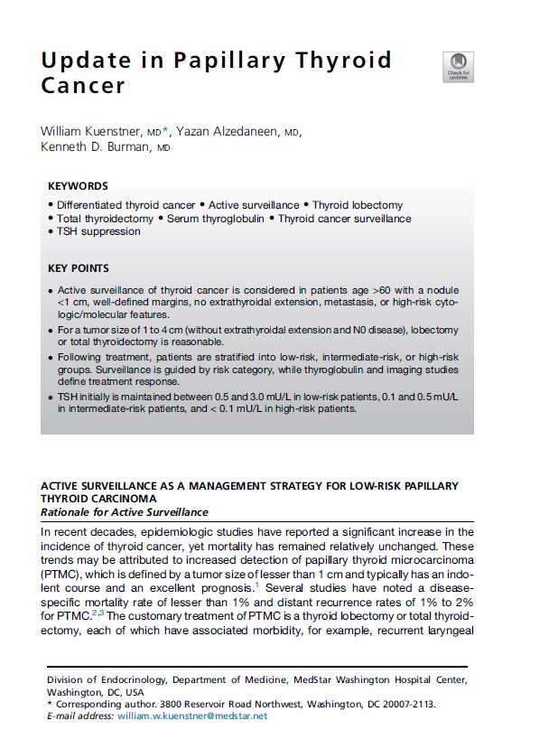 Update in Papillary Thyroid Cancer Endocrinol Metab Clin N Am 2025
