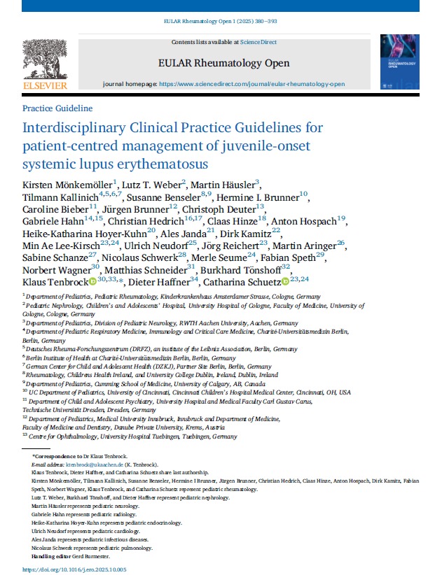 Interdisciplinary Clinical Practice Guidelines for patient-centred management of juvenile-onse systemic lupus erythematosus EULAR Rheumatology Open 2025