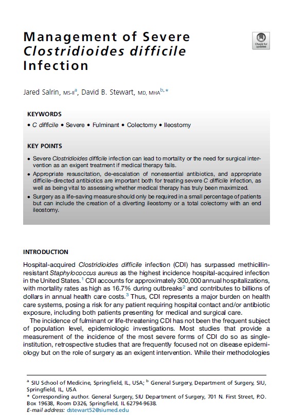 Management of Severe Clostridioides difficile Infection Infect Dis Clin N Am 2025
