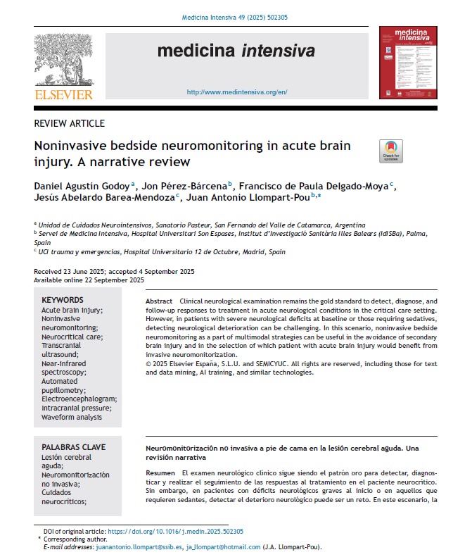 Noninvasive bedside neuromonitoring in acute brain injury. A narrative review Medicina Intensiva 2025