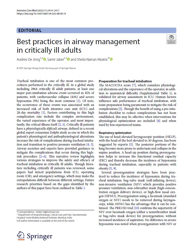 Best practices in airway management in critically ill adults Intensive Care Med 2025