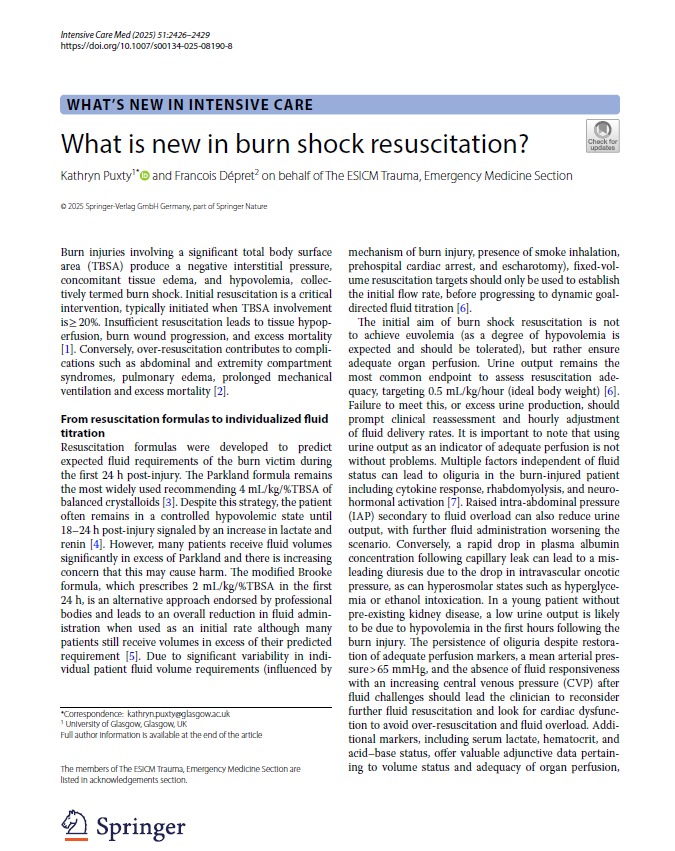 What is new in burn shock resuscitation? Intensive Care Med 2025