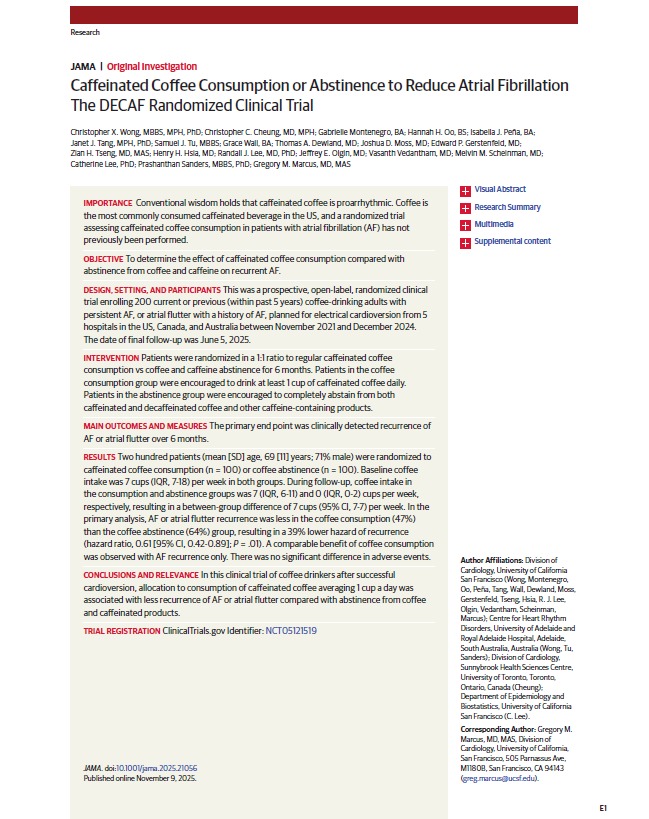 Caffeinated Coffee Consumption or Abstinence to Reduce Atrial Fibrillation JAMA 2025